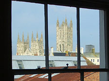 教室の窓からも大聖堂が見える、素晴らしい立地ながら、メインストリートから一歩奥まった学校周辺は、とても静かです。外観も内部も、特にこれといった特徴のないビルですが、窓から見える大聖堂は圧巻。カンタベリーは観光面では大聖堂で有名ですが、3つの大学をかかえる学園都市でもあります。そのため 語学学校もいくつかありますが、その中でも長年の実績と評判が良く確立された学校の一つです。高速鉄道の開通により、ロンドンへも1時間で出られるので、便利です。